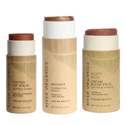 Build your own natural makeup trio, choose one lip product, one highlighter or bronzer, and one blush for a personalized, everyday glow. -