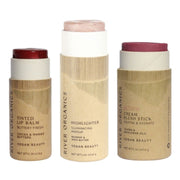 Lip + Highlighter + Blush Set – Customizable Vegan Makeup Trio | Plastic-Free, Organic & Cruelty-Free Beauty