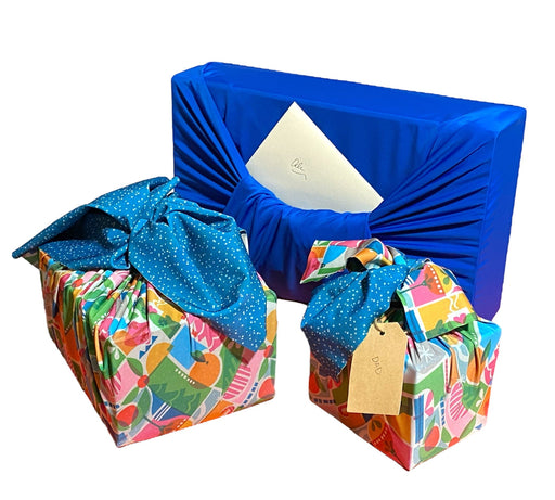 View full detailsSet of 3 (S, L, XL) Reusable Cloth Furoshiki Gift Wrap | Holiday Shapes & Deep Blue