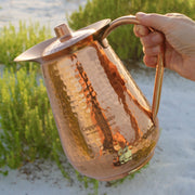 This one-of-a-kind hammered & polished water pitcher is handcrafted with care from pure copper and is of exceptional quality that’s made to last a lifetime.