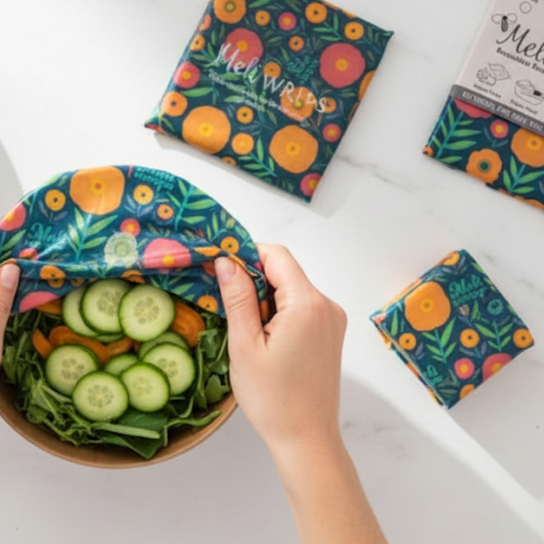 Our Beeswax Food Wrap – Fall Bloom Print offers an eco-friendly, stylish way to cut down on single-use plastics. Each wrap is crafted from organic cotton, Hawaiian beeswax, tree resin, and plant oils, then printed with a gorgeous autumn-inspired design. Reusable up to 150 washes (1–2 years of typical use), Meli Wraps help keep millions of pounds of plastic out of our oceans and landfills. Store food naturally and beautifully while making a positive impact.