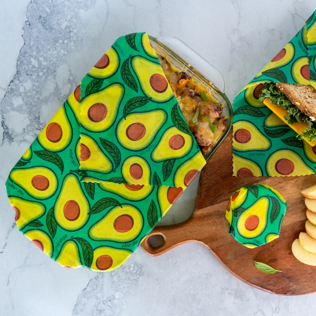 Our Beeswax Wrap Bulk Roll – Avocado Print offers an eco-friendly, customizable way to cut down on single-use plastics. Each roll is crafted from organic cotton, Hawaiian beeswax, tree resin, and plant oils, then printed with a vibrant avocado design. Reusable up to 150 washes (1–2 years of typical use), Meli Wraps have already helped keep millions of pounds of plastic out of oceans and landfills. Store food naturally and beautifully while making a positive impact.