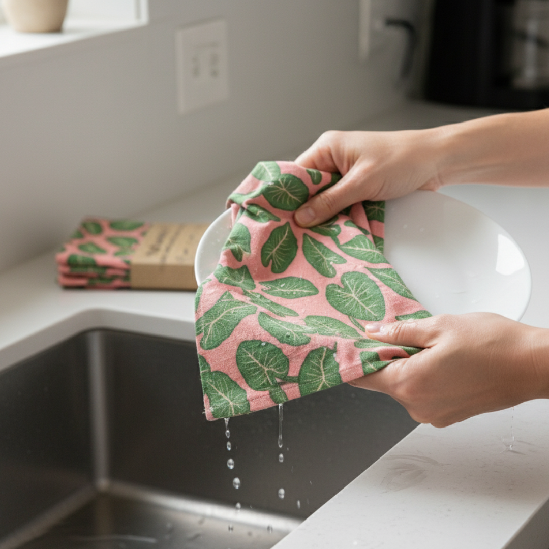 The Kalo Kitchen Towel Set of 2 makes it simple to bring style, function, and sustainability to your kitchen. Made from 100% cotton, these generously sized towels (24" × 16") are soft, absorbent, and machine washable for long-lasting performance. By switching to reusable cotton towels, you’ll significantly reduce your reliance on paper towels, saving money and keeping unnecessary waste out of landfills. Pair them with Swedish Dishcloths and Meli Wraps Beeswax Wraps for a cohesive, planet-friendly kitchen setup.