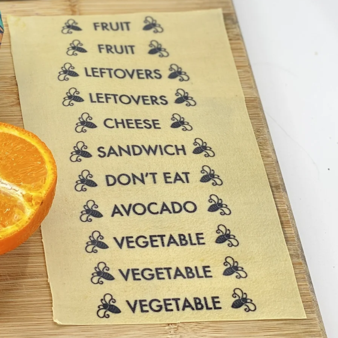 Our Buzz Words – Beeswax Wrap Food Labels are an eco-friendly way to stay organized in your kitchen while keeping waste low. These reusable labels are designed exclusively for Meli Wraps Beeswax Wraps and Rolls, eliminating the need for disposable stickers or plastic tags. Each label lasts about a year, helping you keep track of food while reducing single-use waste.