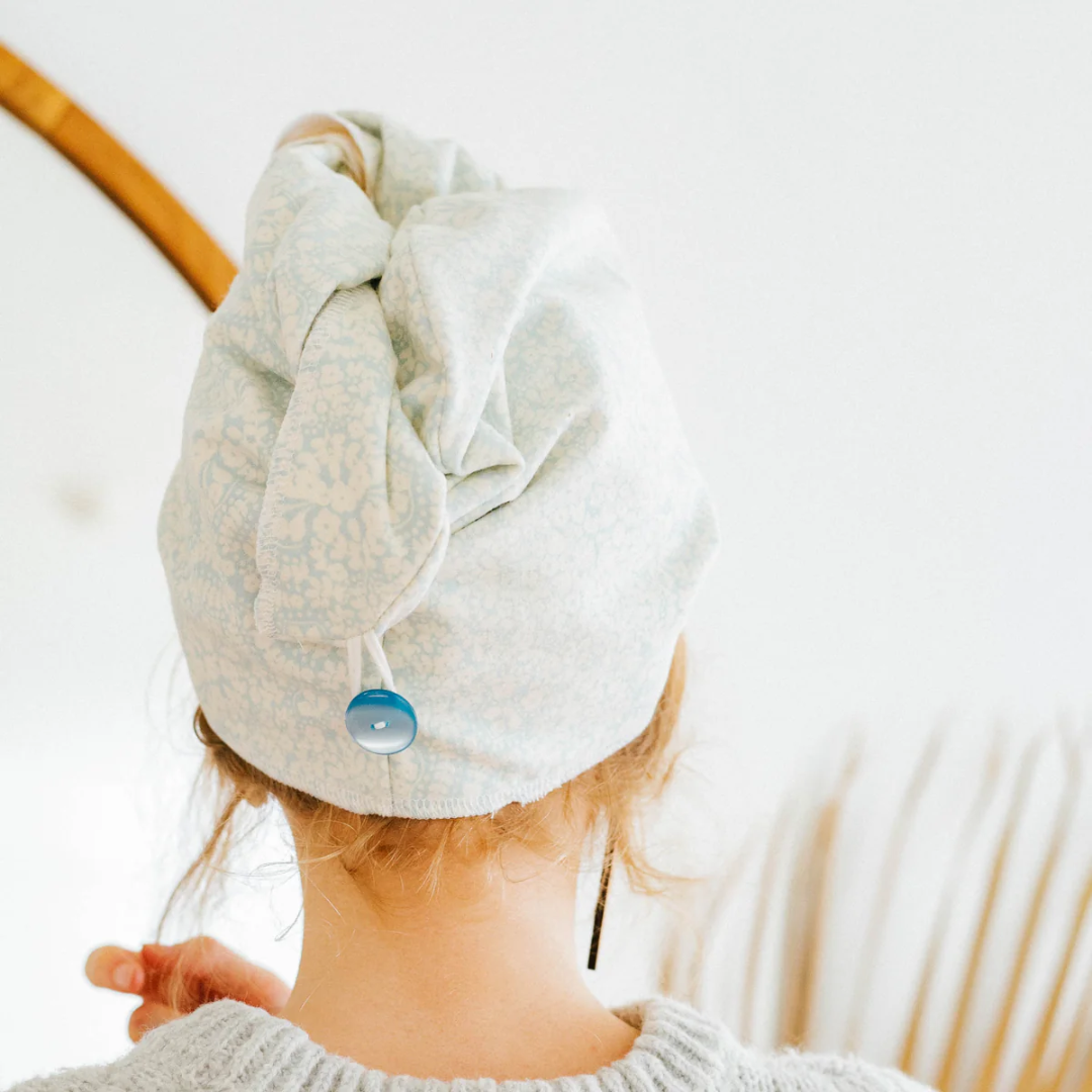 After washing your hair, simply flip your hair forward, place the towel over your head, and twist the length before securing it with the cotton loop and button closure. The flannel fabric absorbs moisture while staying gentle on strands, helping reduce frizz and breakage. Leave it on while you get ready, do skincare, or relax, then remove it for beautifully prepped hair. Machine wash after use and hang or tumble dry low, your towel only gets softer and more absorbent over time.