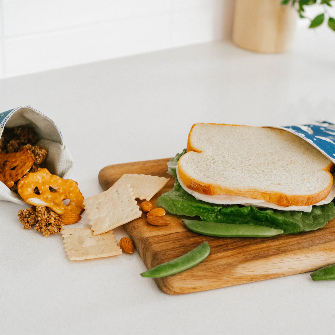 Switching to reusable snack and sandwich bags is a simple yet powerful way to reduce plastic waste. Each bag helps replace countless disposable plastic bags that would otherwise end up in landfills or oceans. Made with OEKO-TEX certified laminated cotton, these bags are non-toxic, biodegradable, and built to last, making them a safe and sustainable choice for your family. By choosing reusable food storage, you’re not only saving resources but also taking a meaningful step toward protecting the planet for future generations.