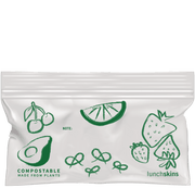 Lunchskins compostable snack bags are made from polybutylene adipate terephthalate (PBAT), a certified compostable polymer that naturally breaks down under composting conditions, along with plant-based materials like polylactic acid (PLA) and cornstarch. This composition helps reduce reliance on fossil fuel-based plastics while ensuring responsible disposal.