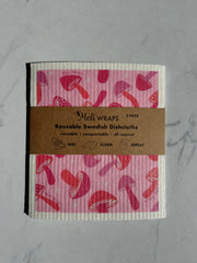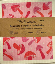 Make cleaning greener with the Meli Wraps Pink Mushroom Swedish Dish Cloth Set, durable, reusable, and compostable. -