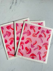 Pink Mushroom Swedish Dish Cloth Set of 3 | Eco-Friendly Reusable Cleaning Cloths