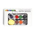 Includes 6 earth paints, a paintbrush, sponge, and water vessel, all stored in a compact, portable case. -