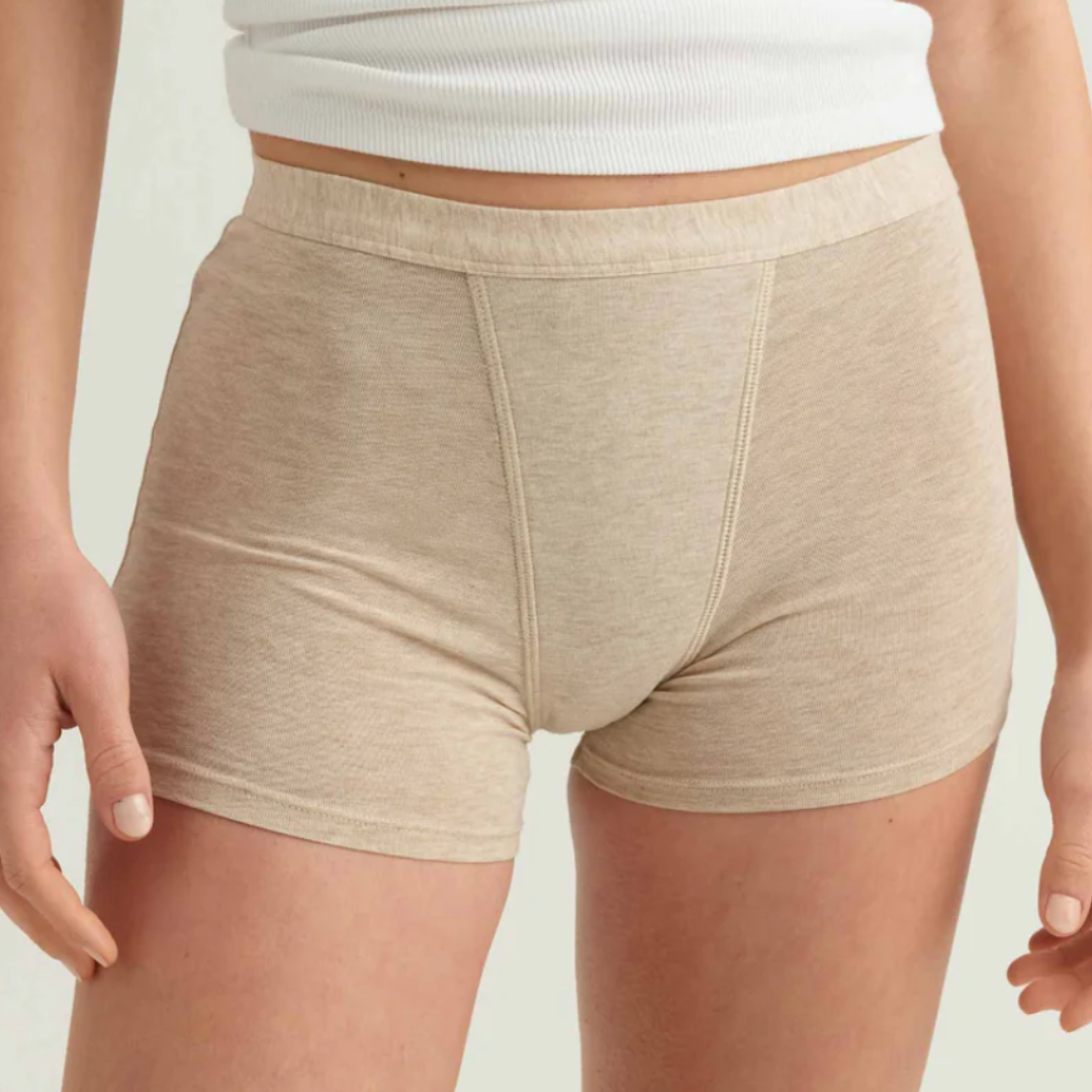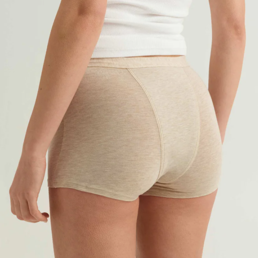 These overnight sleep shorts are made from soft, biodegradable natural cotton certified by OEKO-TEX® Standard 100 for safety and sustainability. With a lining of recycled polyester and a gusset that replaces up to seven pads or 10 regular tampons of flow, these shorts significantly reduce disposable product waste. The tea-dyed colors (Pink Chai, Matcha Green, and Red Hibiscus) are produced in Sri Lanka using ethically sourced dye from tea waste, turning byproducts from the tea industry into beautiful, planet-friendly colors.