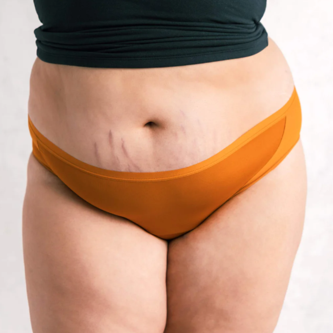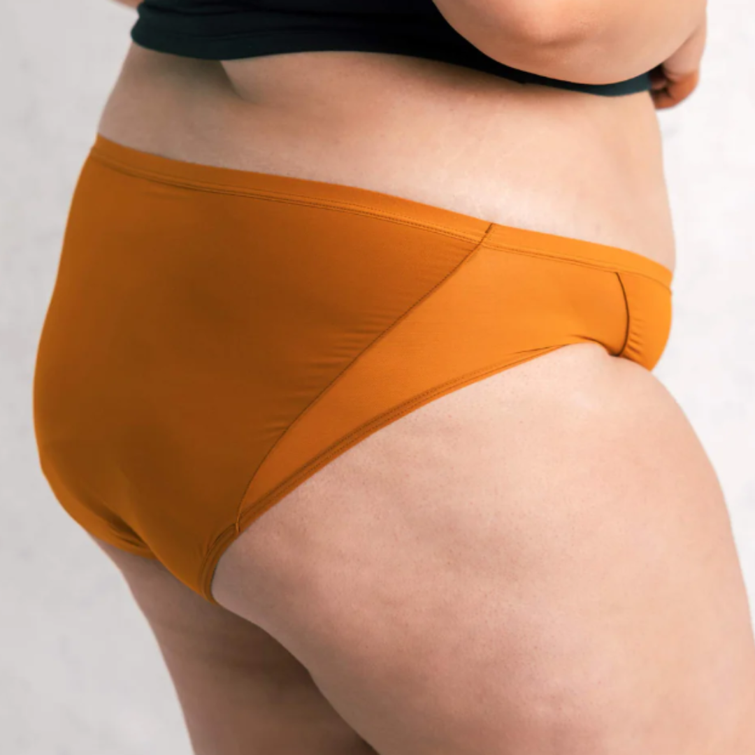 It’s a low-rise, lingerie-inspired style made from recycled materials with a heavy-absorbency gusset and breathable mesh for a flattering fit and strong leak protection.